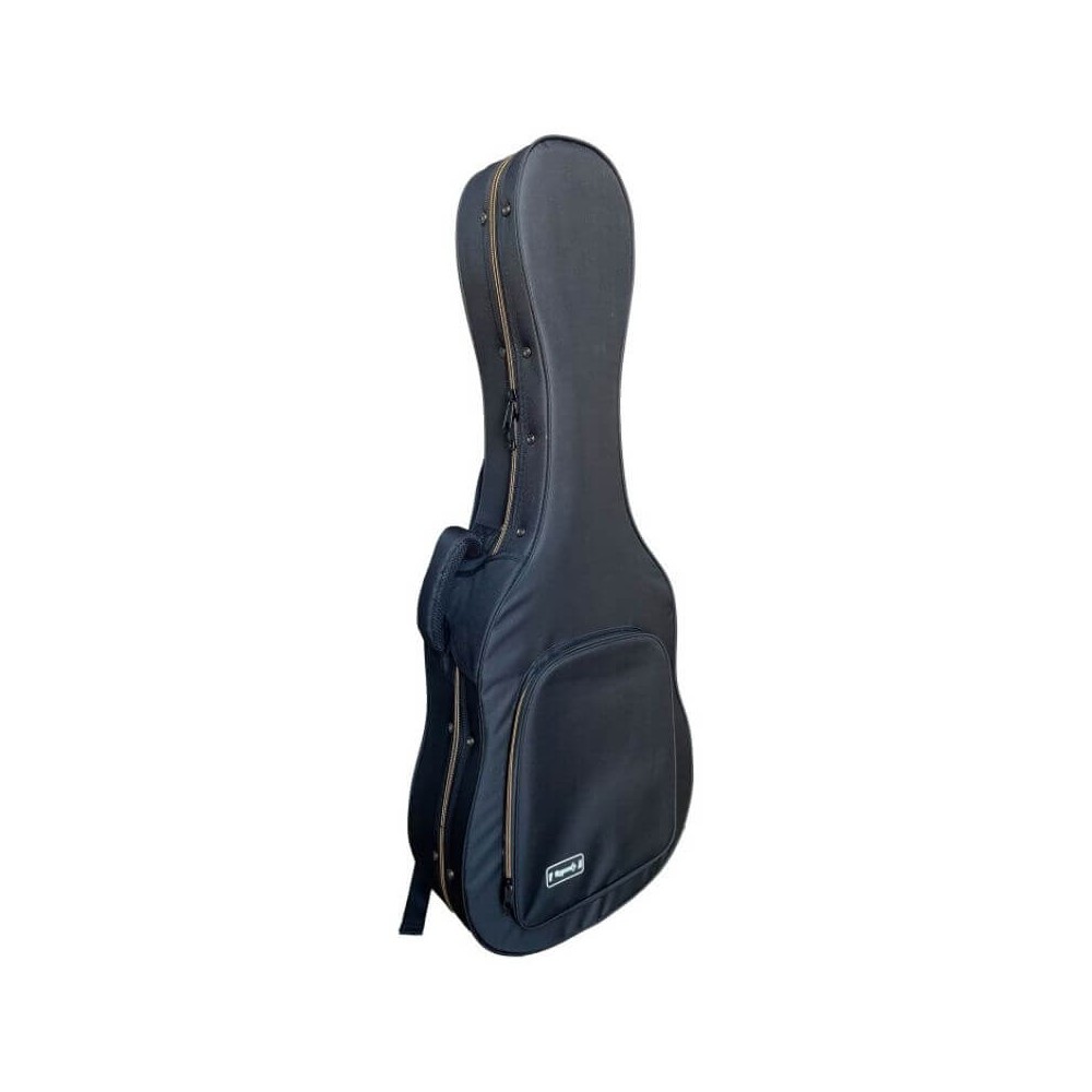 The Rapsody CSG002A classical guitar case is made of canvas exterior and foam structure. It has a large exterior pocket for sheet music. It includes straps for carrying it like a backpack. This case offers great lightness, versatility and excellent value for money.