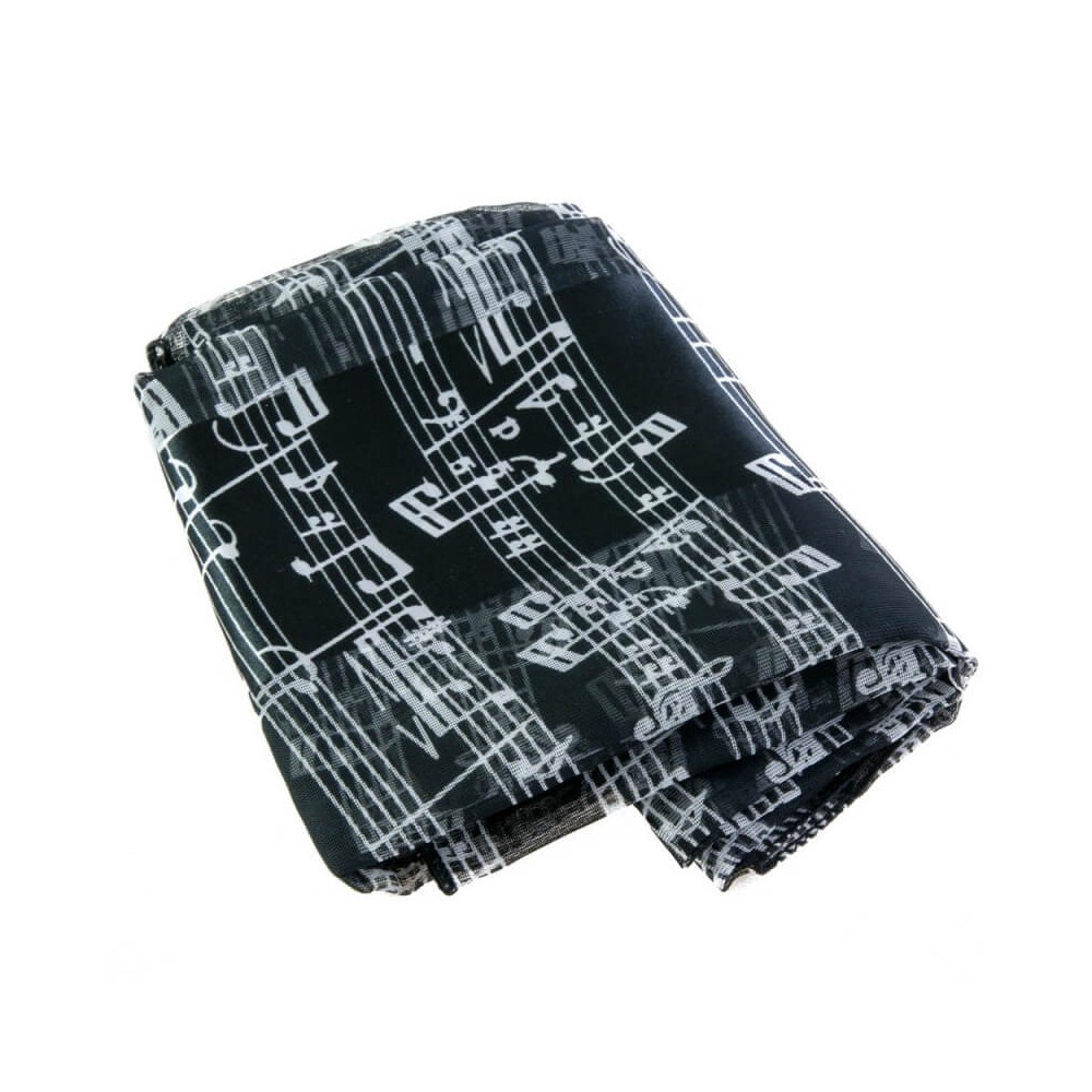 Shawl made of polyester/chiffon with satin stripes, with music notes motif. Measures: 50 x 150 cm